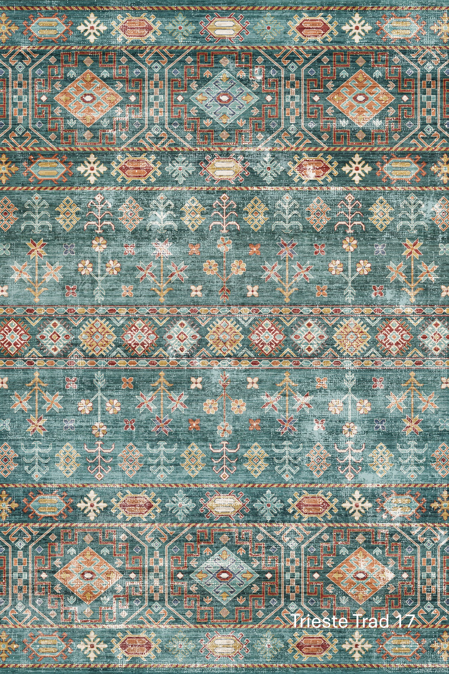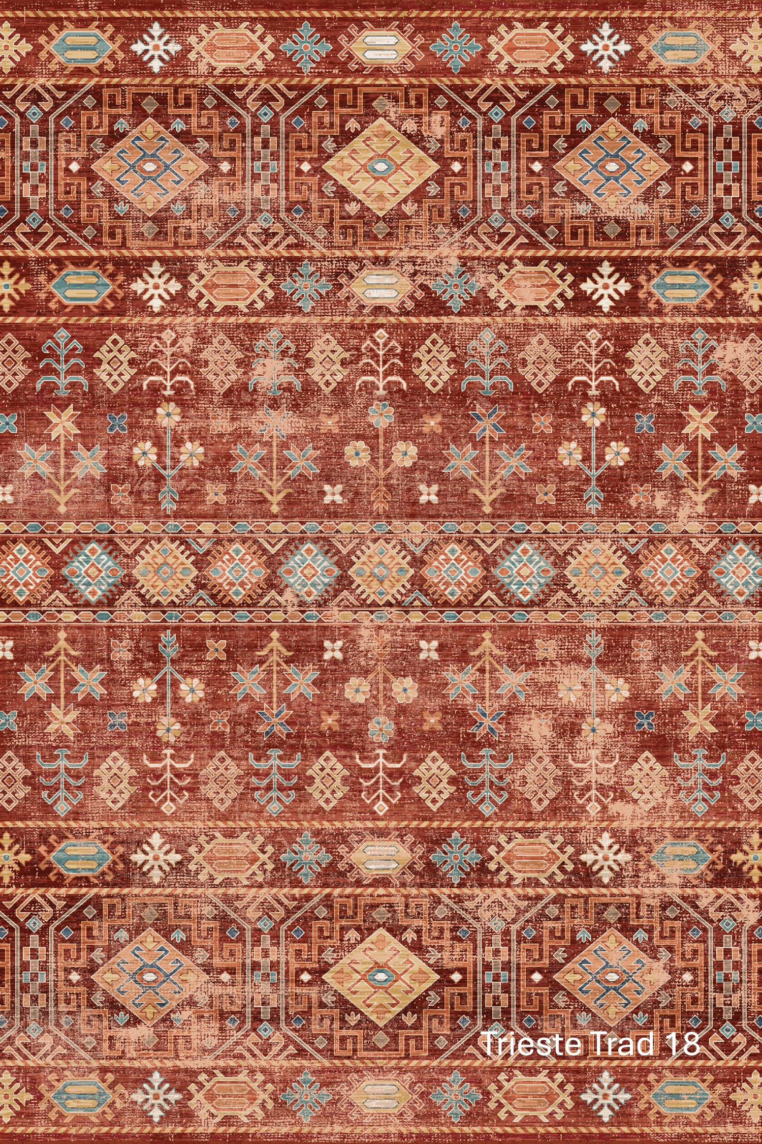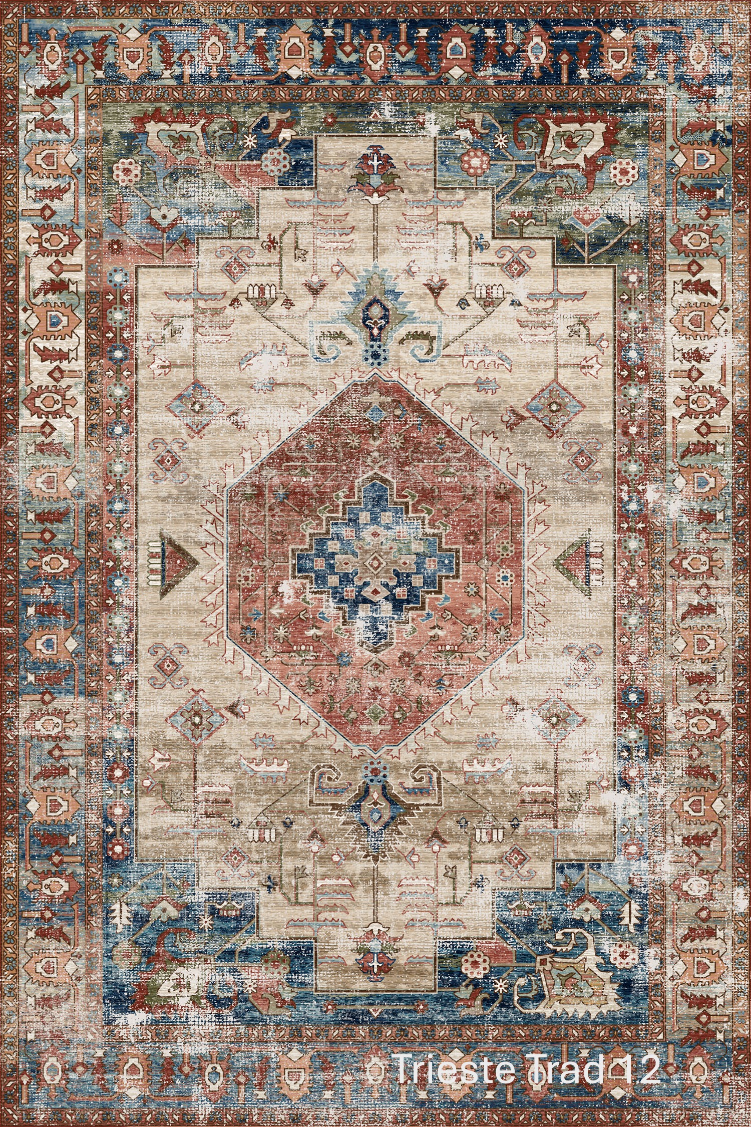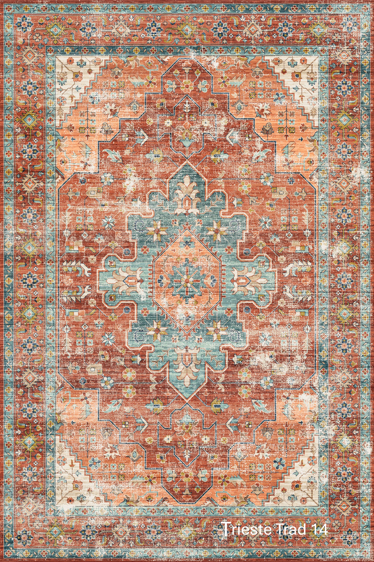 Trieste showcase richly detailed, vintage-inspired designs with a beautifully soft, contemporary finish. Featuring traditional motifs, geometric medallions, and decorative borders, Trieste blends classic character with a gently distressed look that feels both timeless and relaxed. The layered patterns and muted colour variations create depth and warmth, making each rug a statement piece without overwhelming the space.